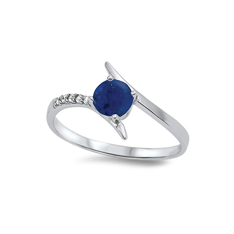 925 Sterling Silver Faceted Natural Genuine Blue Tanzanite Round Ring Size 5