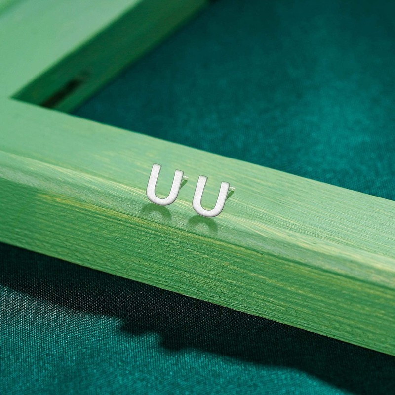 925 Sterling Silver Initial Letter U Earrings for Women Teens Boy Men, Alphabet A-Z Tiny Stud Simple Minimalist Jewelry