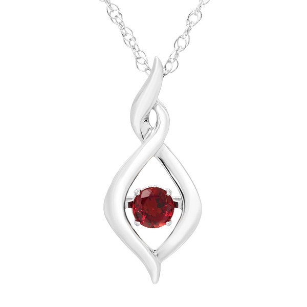 - Add a touch of sparkle with this stunning Dancing Gemstone July birthstone infinity pendant! Featuring a 3.9mm Lab-Grown Ruby in a unique tension setting that flutters with every move. Crafted in 14K Rose Gold Plated 925 sterling silver, and suspended from an 18" rope chain secured with a lobster claw clasp. This twisted infinity design is a gift she'll treasure forever!