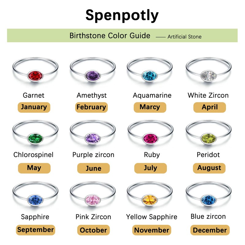 - Mother-daughter stackable birthstone ring: Each cubic zirconia represents the month of birth. The oval birthstone ring represents the mother, and the round birthstone ring represents the daughter. Mother and daughter rings can be stacked on top of each other to form a family ring set.