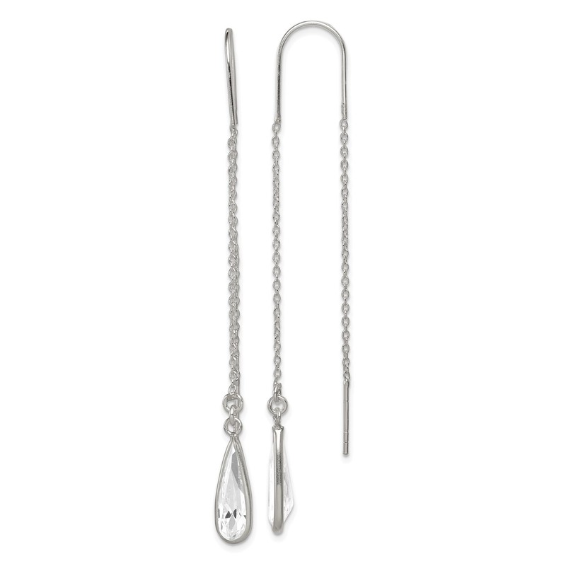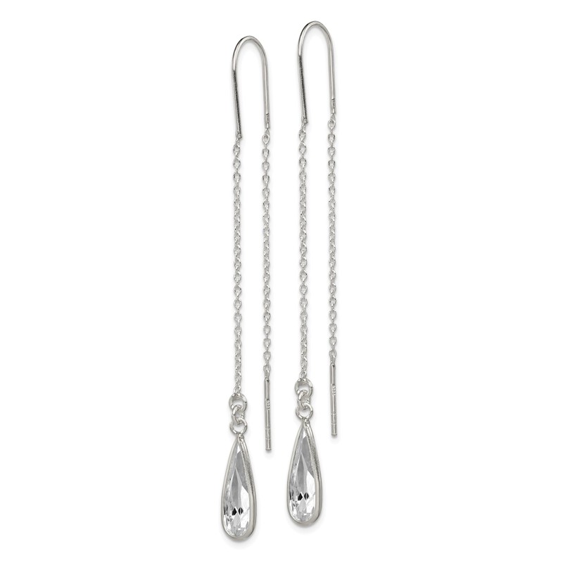 925 Sterling Silver Rhinestone Crystals Teardrop Threader Drop Dangle Earrings