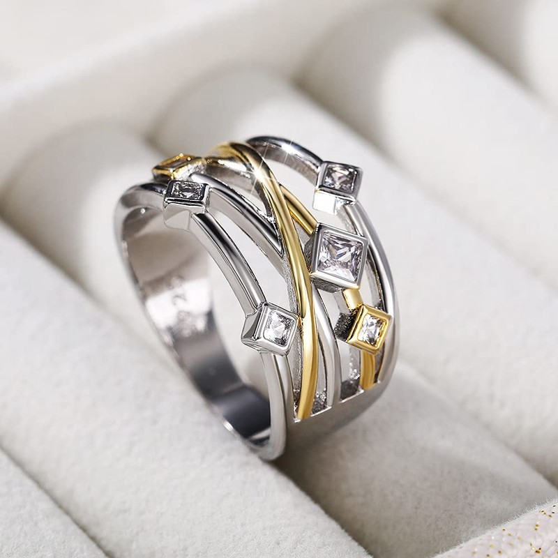 925 Sterling Silver Shiny Full Diamond Gemstone Ring Cubic Zirconia Rings CZ Diamond Multi Row Ring Eternity Engagement Wedding Band Ring for Women (US Code 6)