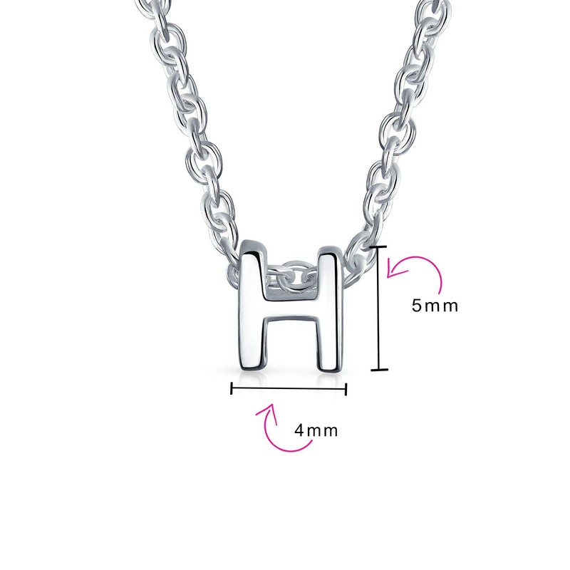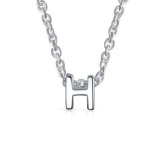 .925 Sterling Silver Small Block Uppercase Letter H Initial Pendant Necklace 16 Inches + 2" Extender