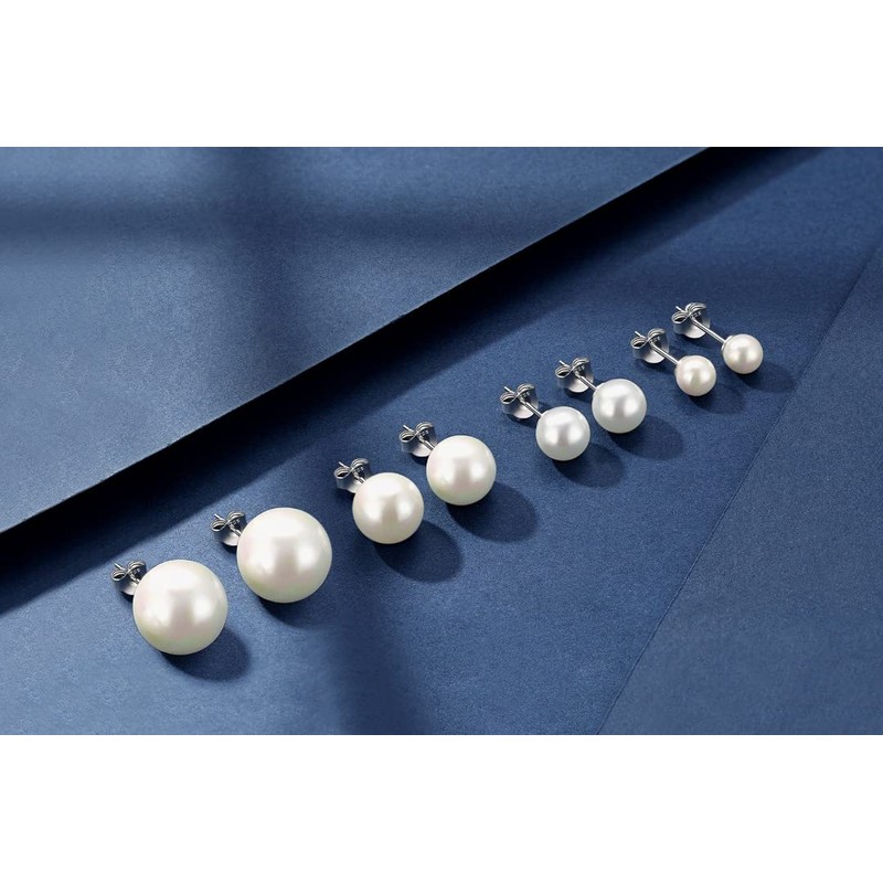 925 Sterling Silver Stud Earrings with White Freshwater Cultured Pearls Pearl Earrings for Women with Stud Earrings with Pearls in Silver, Gold and Rose Gold Small & Large, Sterling Silver