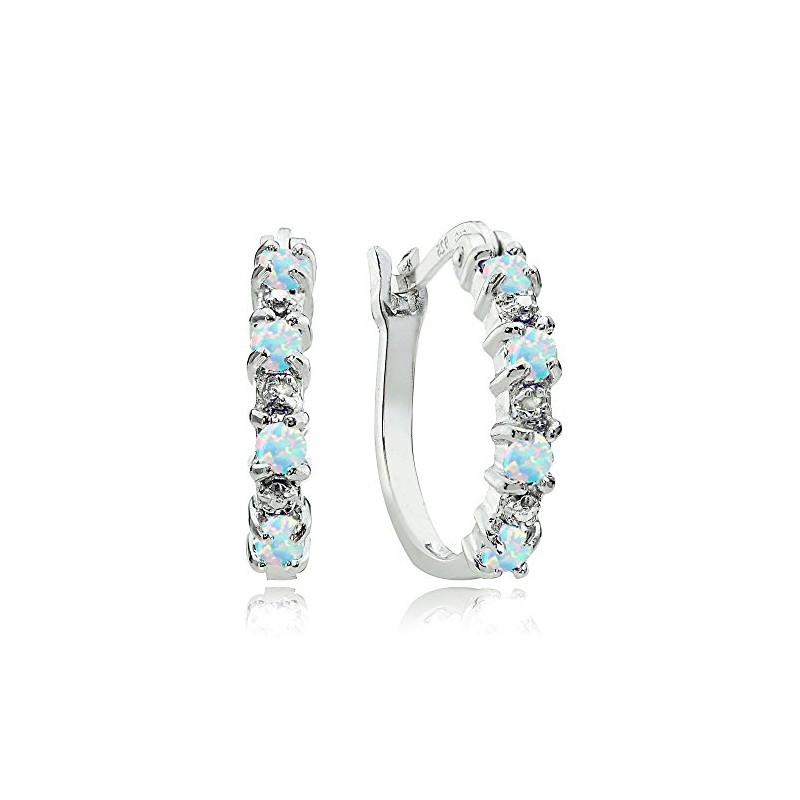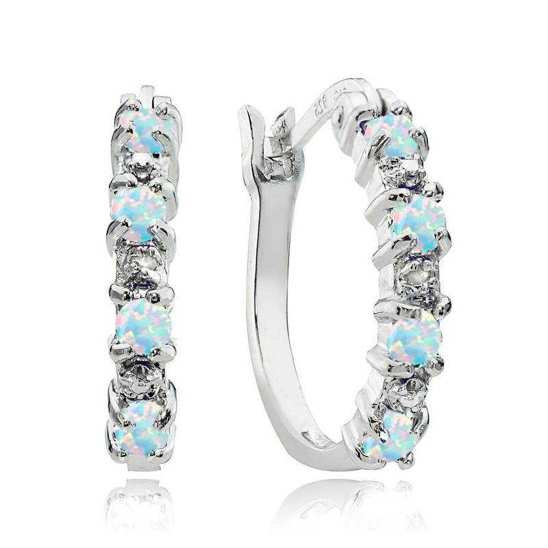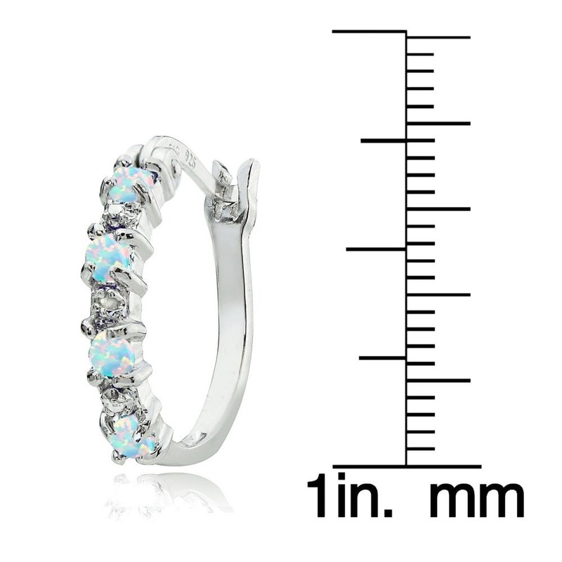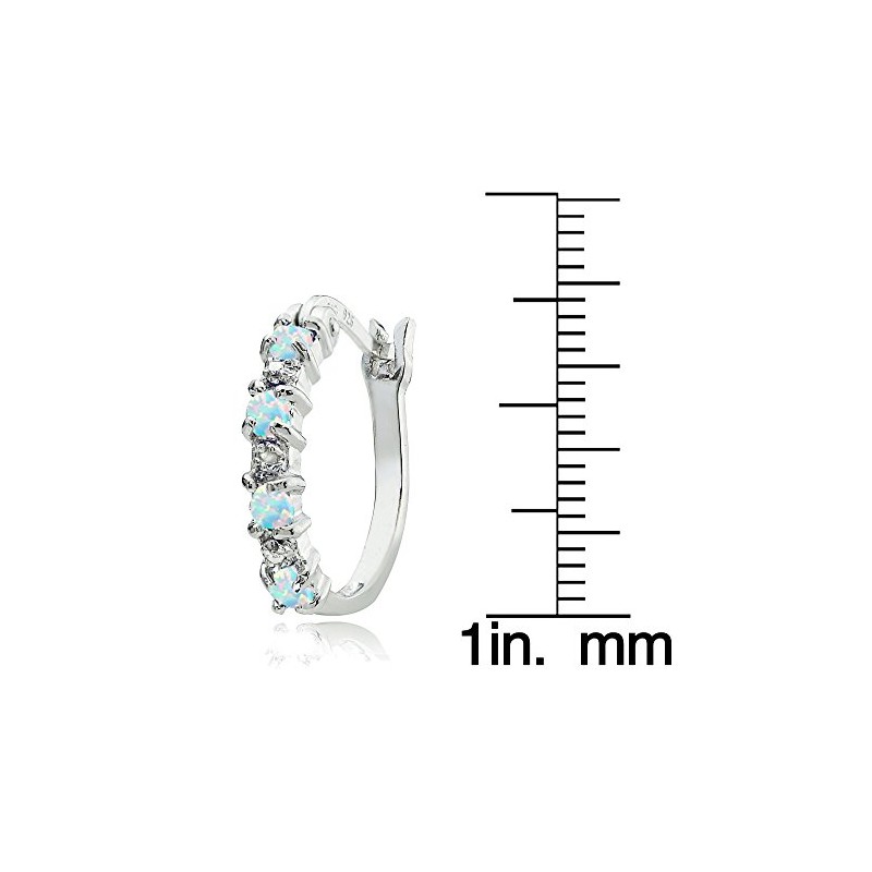 925 Sterling Silver Synthetic White Opal Small Round Hoop Earrings for Women