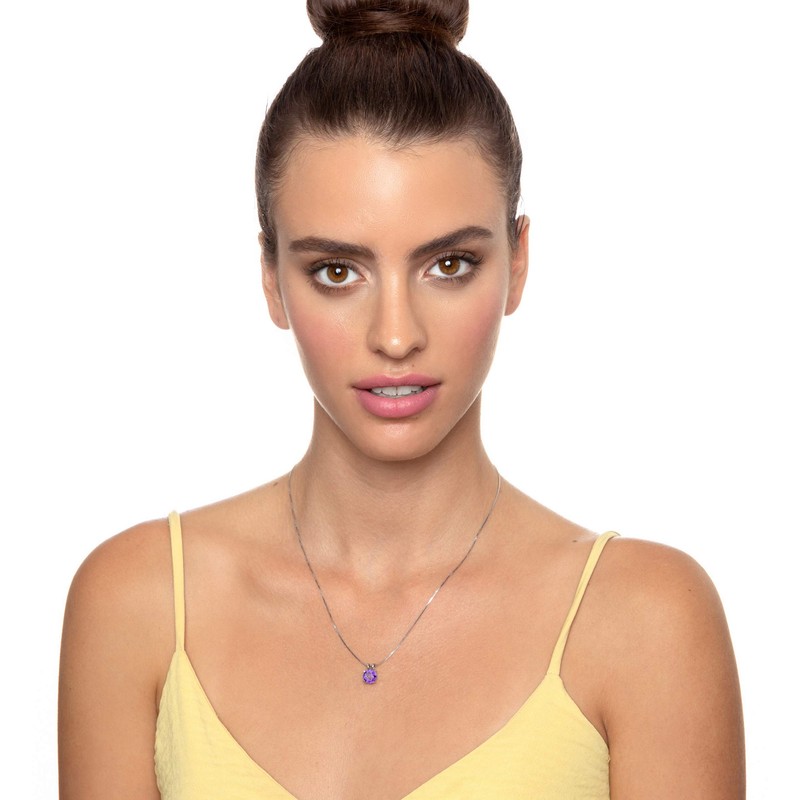 - A 925 sterling silver, high quality, Italian chain measuring 18 inches, 45cm, elegantly suspends from the brilliant round cut Swarovski stone, 0.3 inches, 8mm. The pendant is 4 prong set in a 925 sterling silver frame measuring 0.3x0.5 inches, 8x13mm, including the bail and the chain fastens with a classic spring ring clasp.