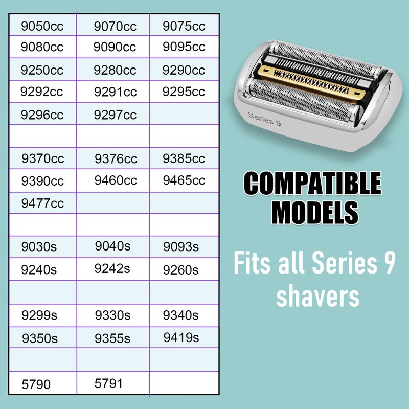 - 【FIT Model】Shaver Head Replacement Compatible with all Series 9 (9290cc, 9291cc, 9370cc, 9376cc, 9293s, 9260s, 9295cc, 9385cc, 9390cc, 9330s, 9296cc).