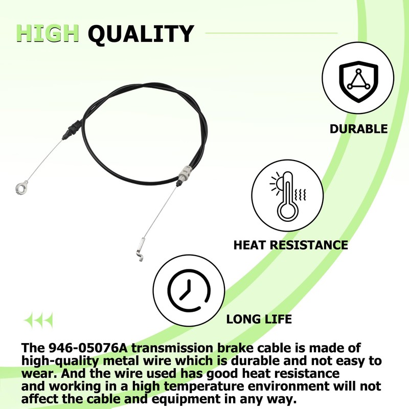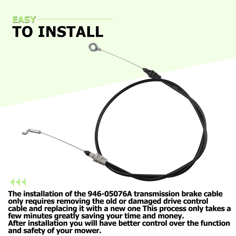 - Function and Package: Its primary function is to generate friction for slowing down or stopping the mower, enhancing user safety. You'll receive a new 946-05076A cable, approximately 53.6 inches long