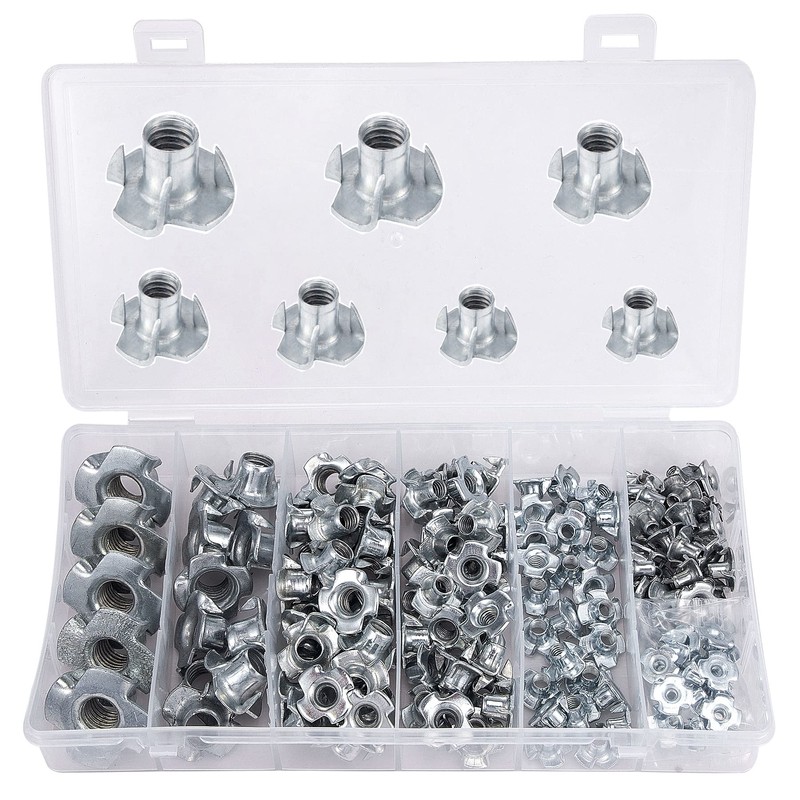 95pcs Zinc Plated Nuts with Claws T-Nuts 7 Size Assets: M3 M4 M5 M6 M8 M10 M12