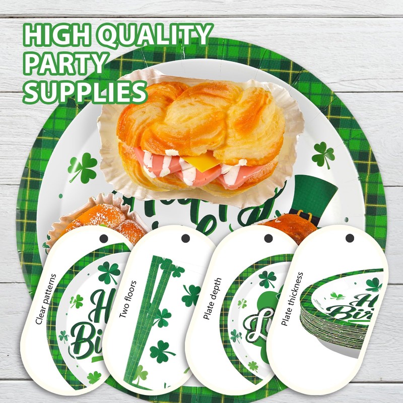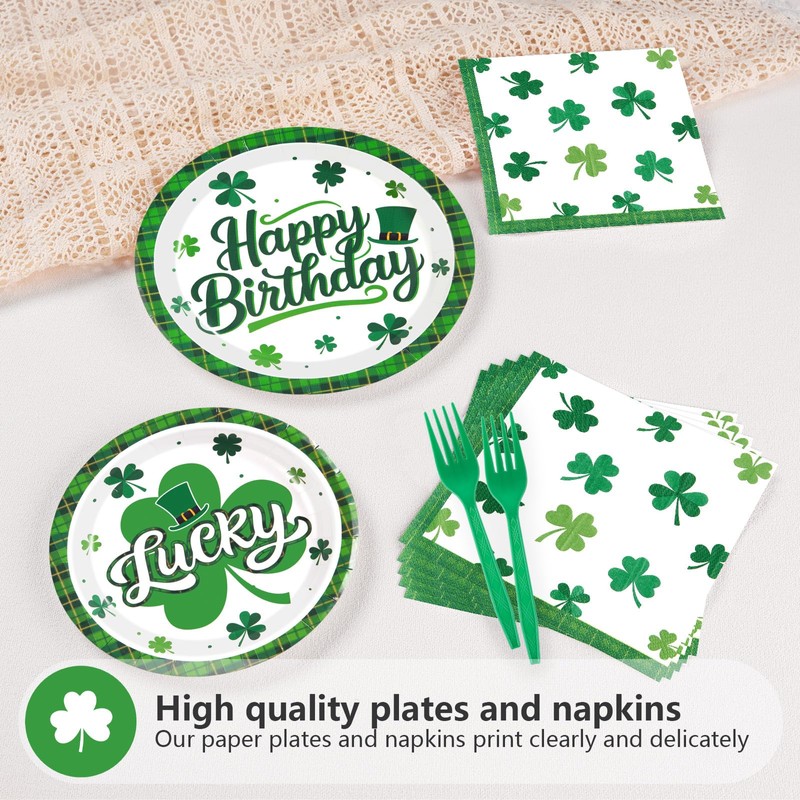 - St. Patrick’s Day Party Complement: Our st patricks day party plates and napkins are here to elevate your St. Patrick’s Day party decorations.They are the perfect addition to your st. patrick’s day party decorations and can match perfectly with your st. patrick’s day-theme party decorations (such as st. patrick’s day party tablecloths, st. patrick’s day-themed party banners, st. patrick’s day theme party backdrops, etc.)