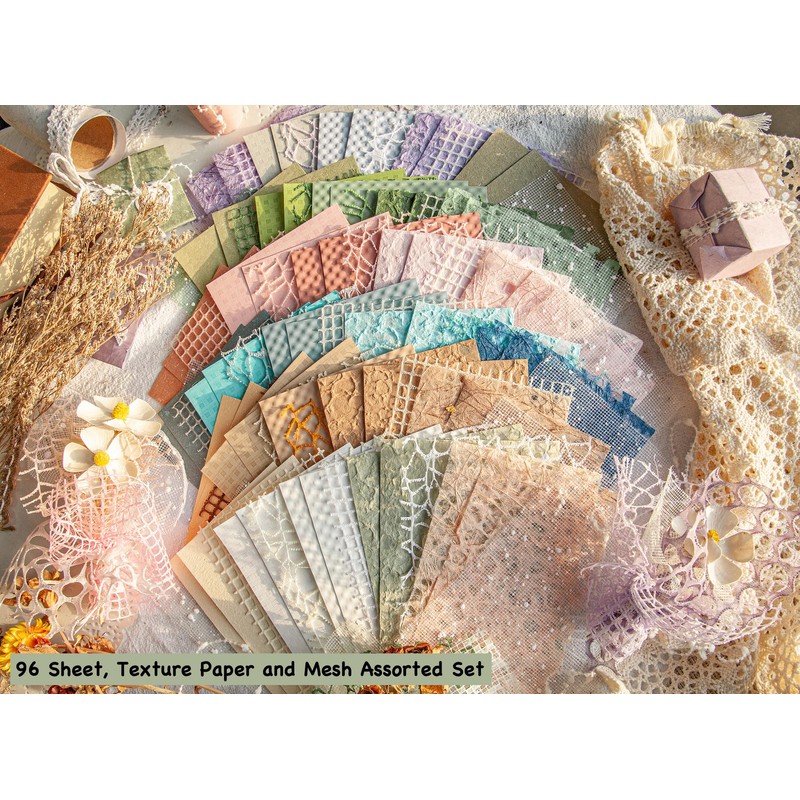 VARIETY OF DESIGNS: Each package comes with 6 pack, 96 pieces assorted textured paper and mesh fabric in various colors, textures and materials SIZE DETAILS: The papers measure approximately 3.9 x 5.5 inches; perfect for journals, scrapbooks, or crafting decorations; you can easily cut them into different sizes and shapes, and combine them with other decorative materials for your DIY projects LARGE QUANTITY: Enough quantity with assorted paper types to meet your large and diverse decorating or scrapbooking needs, you can store them for using a long period MULTI-USE: These journaling supplies are perfect for vintage-style crafts, including scrapbooking, card making, gift wrapping, and decorating photo frames, notebooks, walls, and more; add a retro touch to your projects and daily life GORGEOUS GIFT: This retro decorative craft DIY paper pack wrapped with lace doily makes thoughtful gifts for journal lovers, craft friends, students, anniversaries, birthdays and holidays, etc