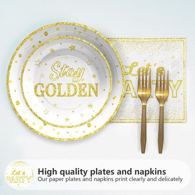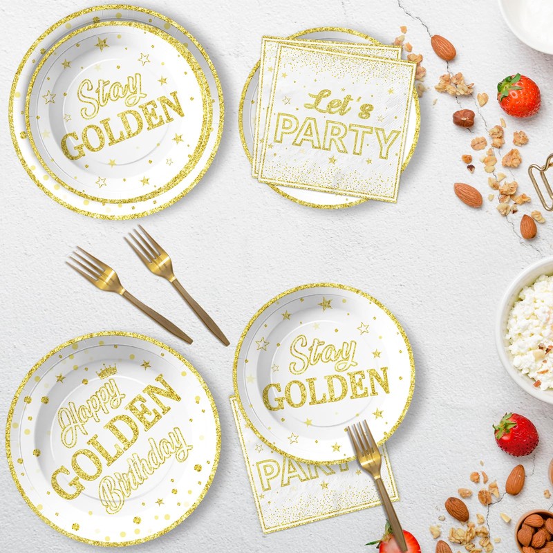 - Happy Golden Birthday Design: Our golden themed table decorations are printed with golden color element, such as star patterns, large letters, Design with "Happy golden birthday", "Stay Golden", our party cutlery set is unique and adds to the party glow, make a memorable and meaningful party with this exquisite happy golden birthday party supplies