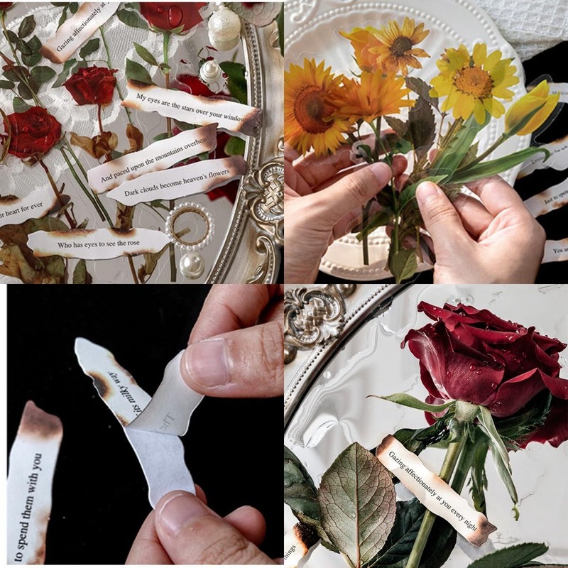 96PCS Rose Sunflower and Poetry Scrapbook Stickers Kit Flower PET Transparent Waterproof Stickers Set for Junk Journal Journaling Water Bottles Phone Laptop Decals Pack for Teens Girls Kids Adults