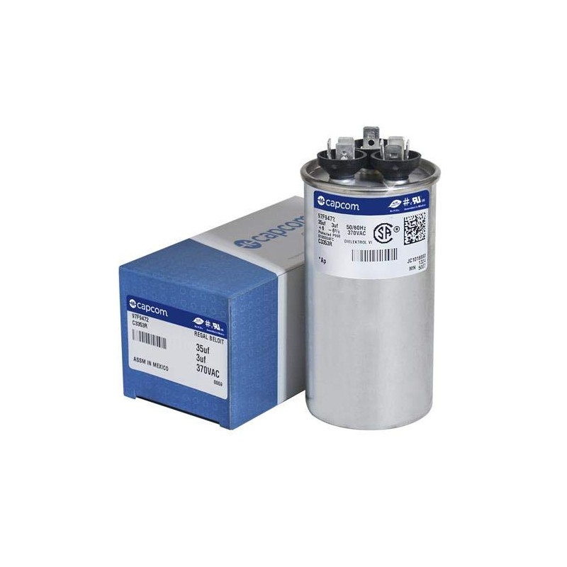 97F9472 - 35 + 3 uf MFD 370 Volt VAC - GE Round Dual Run Capacitor Upgrade