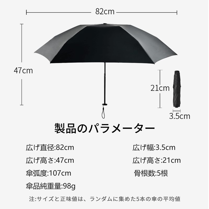 - (Ultra Lightweight Sun Shades) Adopts an ultra-lightweight carbon frame and aviation aluminum alloy ribs, which are lightweight and lightweight for a folding umbrella, only 3.6 oz (98 g) to 4.2 oz (120 g). 30% lighter than ordinary folding umbrellas, and the compact size is only 8.3 inches (21 cm). Women's lightweight umbrella is perfect for makeup purses, briefcases, carry cases, kids backpacks. Convenient for walking and traveling. It not only effectively blocks rain and UV rays, but also makes you forget about the weight of your hands