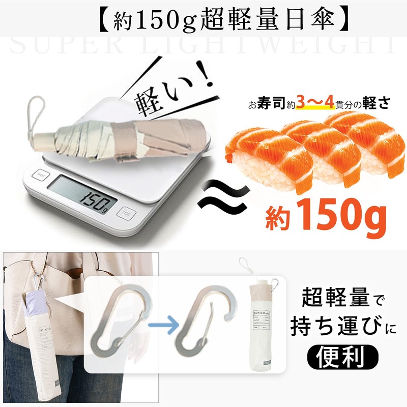 - 【風に強い】今までの傘は軽量化をすれば強度が下がり、丈夫にすると重くなっていましたが、こちらの日傘シリーズは強度や耐久性に優れた素材が採用され、繊細な職人技によって丁寧に仕上げられているため、軽さを実現しつつ、強度や耐久性にも配慮して設計しており、風速20m/sまで耐えられる丈夫なフレーム構造になっています。万が一強い風で裏返っても、折りたためば元に戻れます。また、素材選びから製造まで、徹底した品質管理の下で作り上げられてるため、日焼けによる劣化の心配もなく、耐久性が通常傘の約1.7倍です。