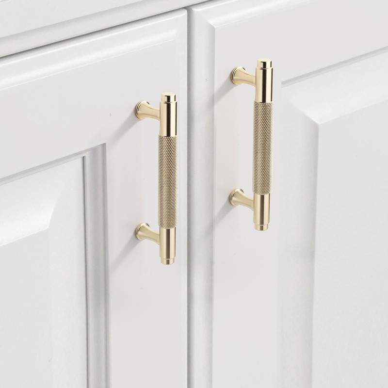 9BUILD 10 Pack Knurled Cabinet Pulls 3.75 Inch Brushed Gold Kitchen Cabinet Handles Gold Cabinet Hardware Kitchen Handles for Cabinets Brass Drawer Pulls T Bar Drawer Handle