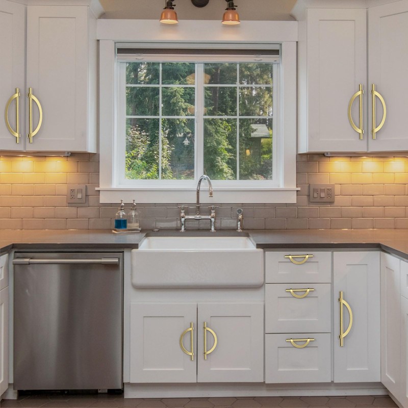 9BUILD 6 Pack Half Moon Cabinet Pulls - 7.5 Inch Brushed Gold Kitchen Cabinet Handles for Cabinets and Dressers