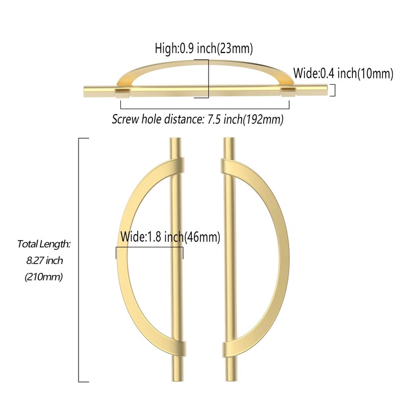 - Size of cabinet hardware: Hole Centers(CC): 7.5 inch(192MM); Overall Length: 8.3 inch(210MM); Height: 1.8 inch(46MM); Bar Width: 0.4 inch(1MM), weight: 3oz. Please check the size of the kitchen handle you need carefully before you buy.