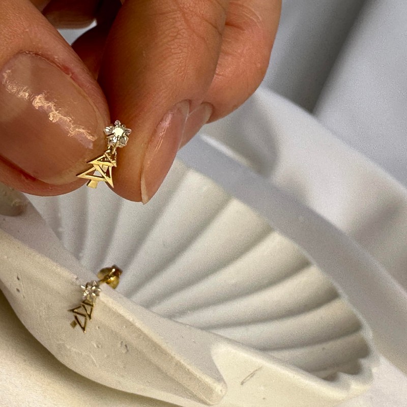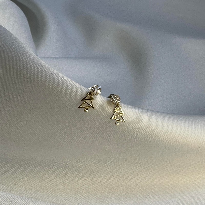 9ct Gold Christmas Tree Clear CZ Star Stud Drop Earrings