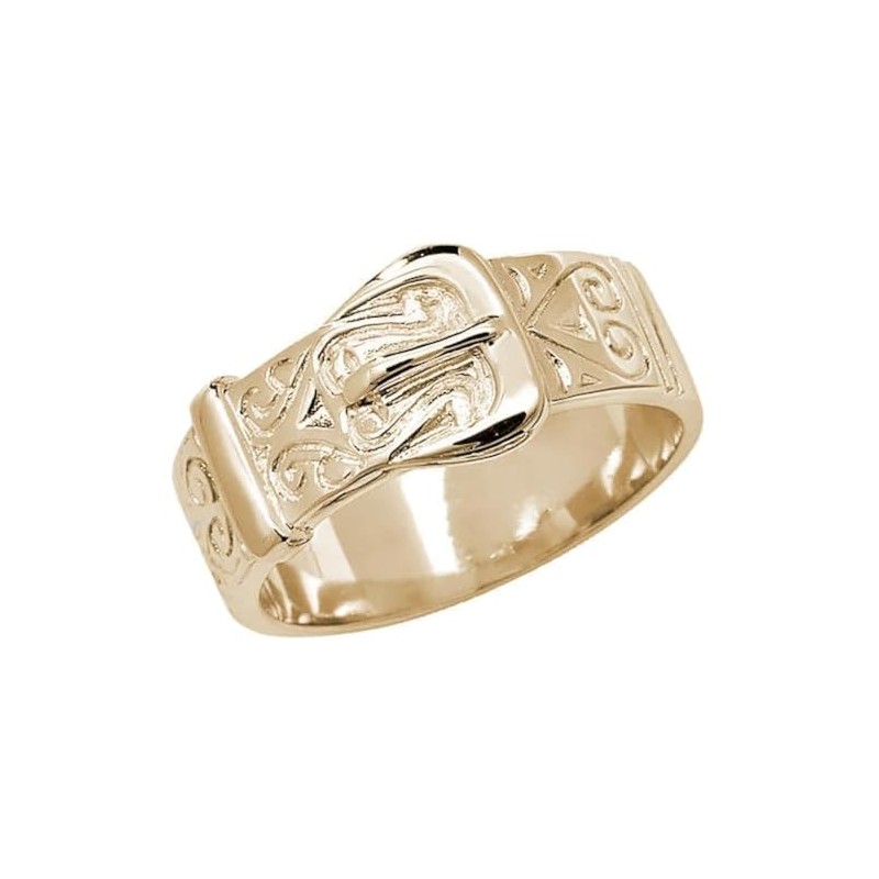 9ct Yellow Gold on Silver Men's Chunky Patterned Buckle Ring size P Q R S T U V W X Y Z Z+1 (Y)