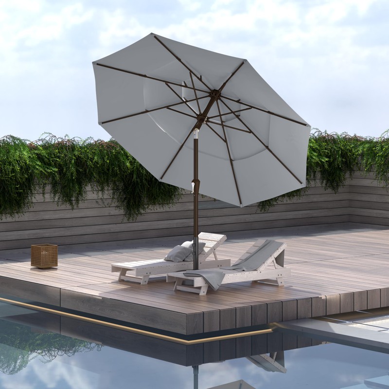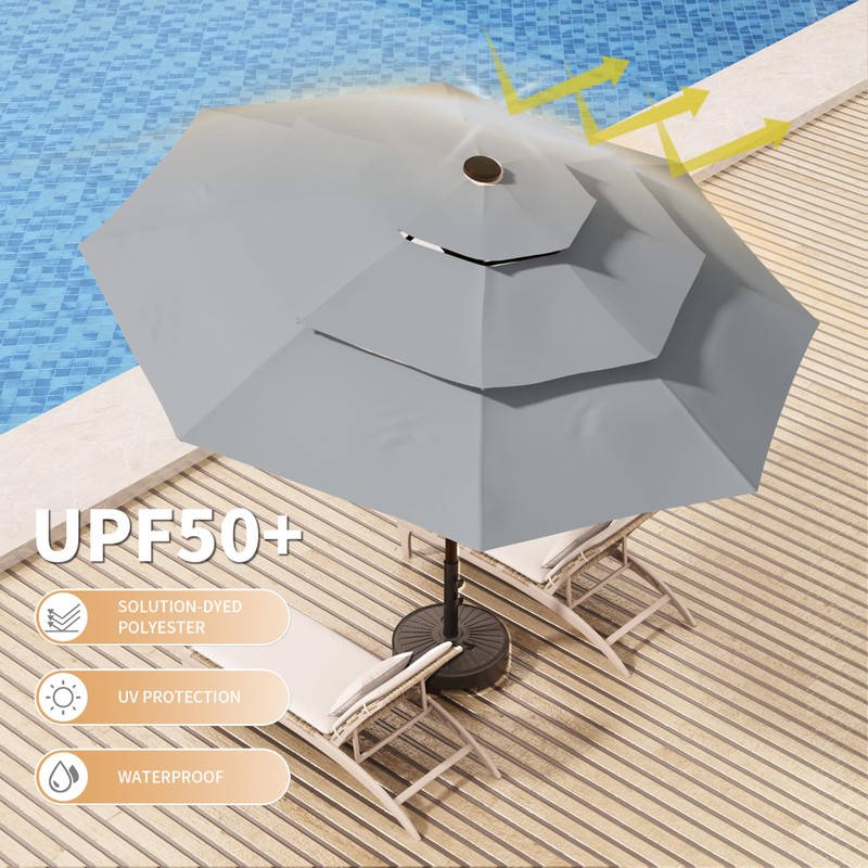 9ft 3-Tier Large Outdoor Patio Umbrella Market Table Umbrella-UV Resistant,Easy Push Button Tilt and Crank,8 Sturdy Fiberglass Ribs Heavy-Duty Pool Umbrella for Deck,Backyard,Garden,Yard,Light Gray