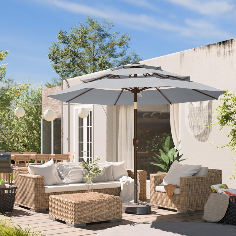 - Reliable Customer Support: lease close and tie up the umbrella when you don't want to use it, especially in windy and rainy days, so that its life is prolonged .If you have any questions, please contact us, we will reply you within 24 hours. PACKAGE CONTENTS - 9ft 3-Tier Large Outdoor Patio Umbrella*1, Manual Instruction*1.