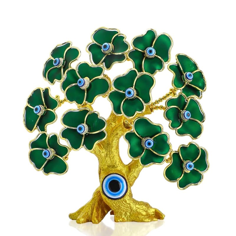 9inch Turkish Blue Evil Eye Tree with Green Flowers for Good Luck Protection Feng Shui Fortune Showpiece Table Centerpiece