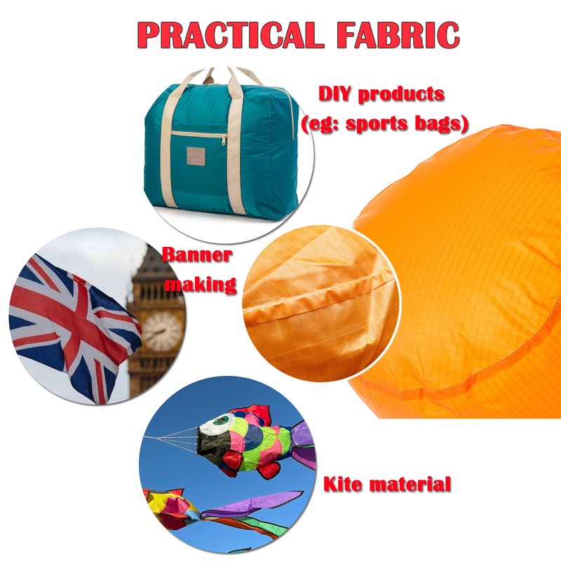 - [Wide Usage] This ripstop waterproof fabric has a wide range of applications. It can be used to make outdoor products (sports bag, tarpaulin, seat cover, outdoor tent, hammock, tarpaulin, etc.). Nylon waterproof lining fabric can also be used as a material for making kites (soft kites, single line kites, stunt kites, wind socks, etc.). In addition, it can be used to make creative products (flags, banners, and other DIY items).