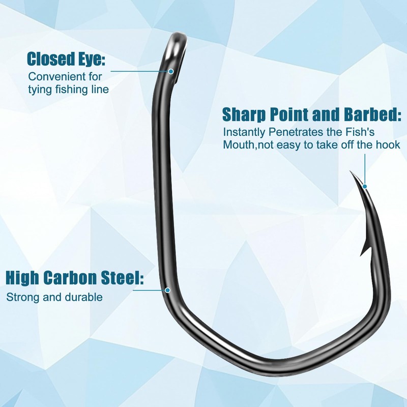 - 【The angular shape for Instant Penetration】With 50% sharper chemically and laser-honed points, these fishing hooks slice through tough carp lips effortlessly. The precision-ground edges ensure solid hookups, even on light bites, minimizing lost fish.
