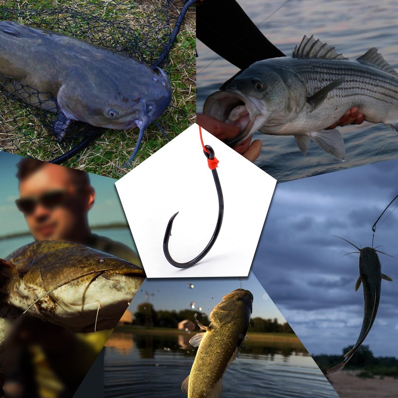 - [Multiple Applications]These circle hooks are specifically designed for presenting live bait.Made with 1X strong wire throughout,they are suitable for a wide range of fishing environments and target species, and also great for drift fishing,trolling and tight lining for catfish,bass,trout,salmon,sunfish,stripers,walleye,large carp etc.