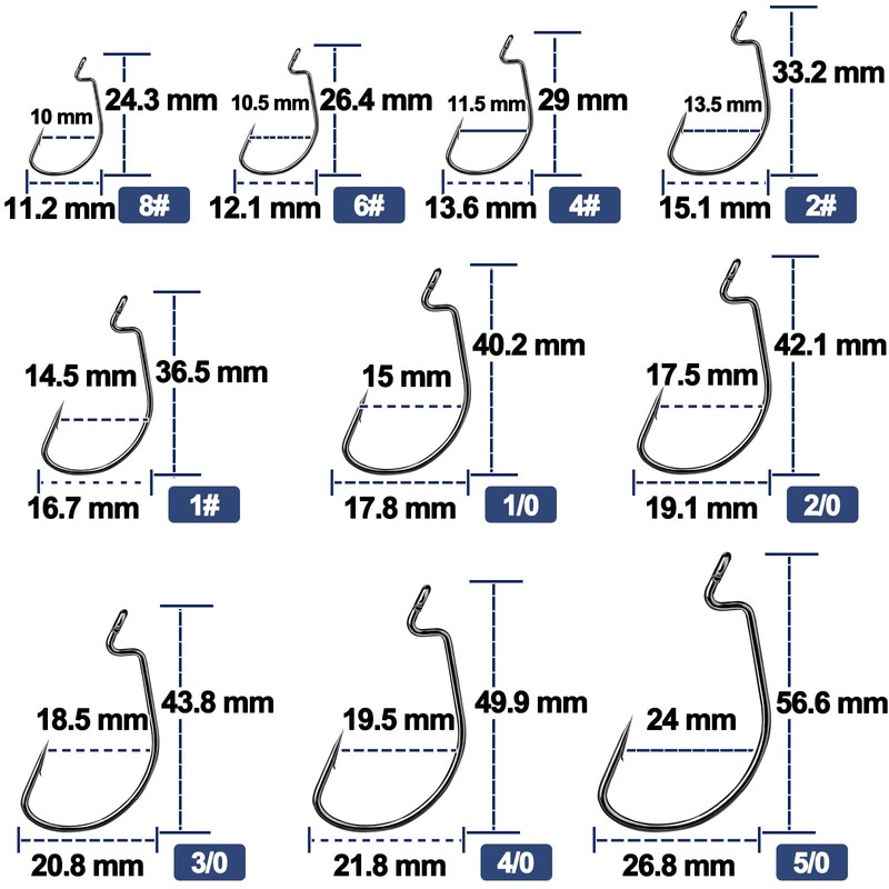 - [Multiple Sizes]9KM DWLIFE offers 10 different sizes to meet your different fishing needs.Including 8#,6#,4#,2#,1#,1/0,2/0,3/0,4/0,5/0.Please check the size chart before purchasing to make sure you buy the right size.If you have any questions,please contact our customer support and we will solve your problem within 24 hours.
