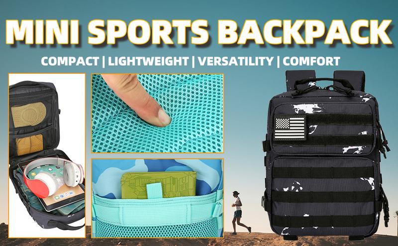 Our 9L mini tactical backpack is made of 900D high-quality nylon, which has waterproof and wear-resistant outdoor functions, which is not only suitable for indoor fitness and outdoor sports, but also suitable for long-distance travel, hiking, camping and other outdoor activities including outdoor family gatherings, it can always accommodate your unexpected items.