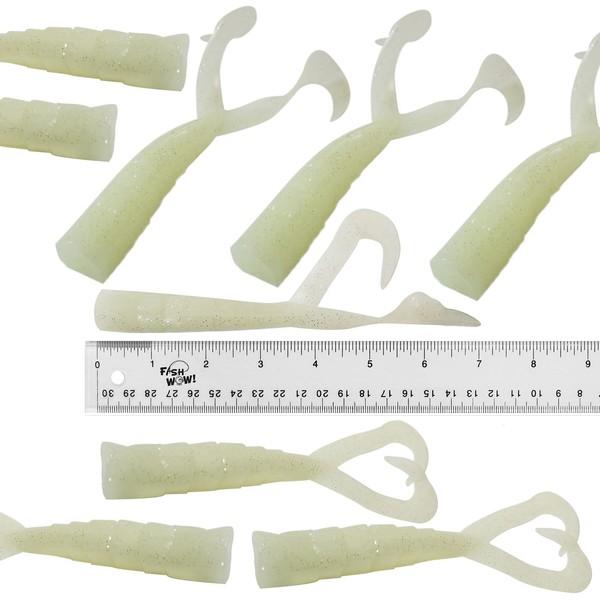 9pcs Glow Fish WOW!® 6 inch Twin Tail Perch Grub 6" Fat Scampi Soft Lure jighead Fishing Grubs Lues - Glow in The Dark