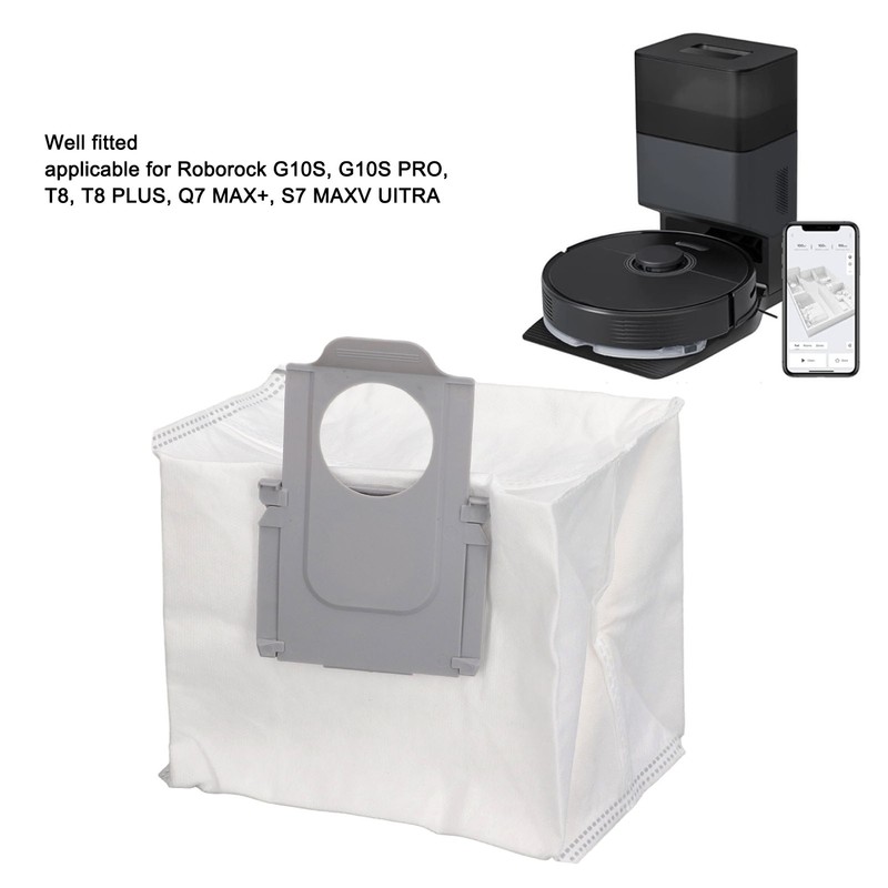 1、Compatible Model: The robot cleaner dust bag is applicable for Roborock G10S, G10S PRO, T8, T8 PLUS, Q7 MAX, S7 MAXV UITRA and can fit the robot cleaner well. 2、Strong Sealing: Compared with the traditional cleaning method, the dustbag has strong sealing performance, which is convenient for cleaning and there is no dust. 3、Non Woven Fabric Material: The robot cleaner disposable dust bag is made of non woven fabric, which can reduce the penetration of dust, dirt, hair, garbage and debris particles. 4、Easy to Install: You just need to take out the whole old dust bag and install a new dust bag along the bracket slot, which is very easy to replace and maintain. 5、Practical Replacement Part: The dust bag is a good assistant of the robot cleaner, and perfectly replaces the original dust bag to improve the performance.