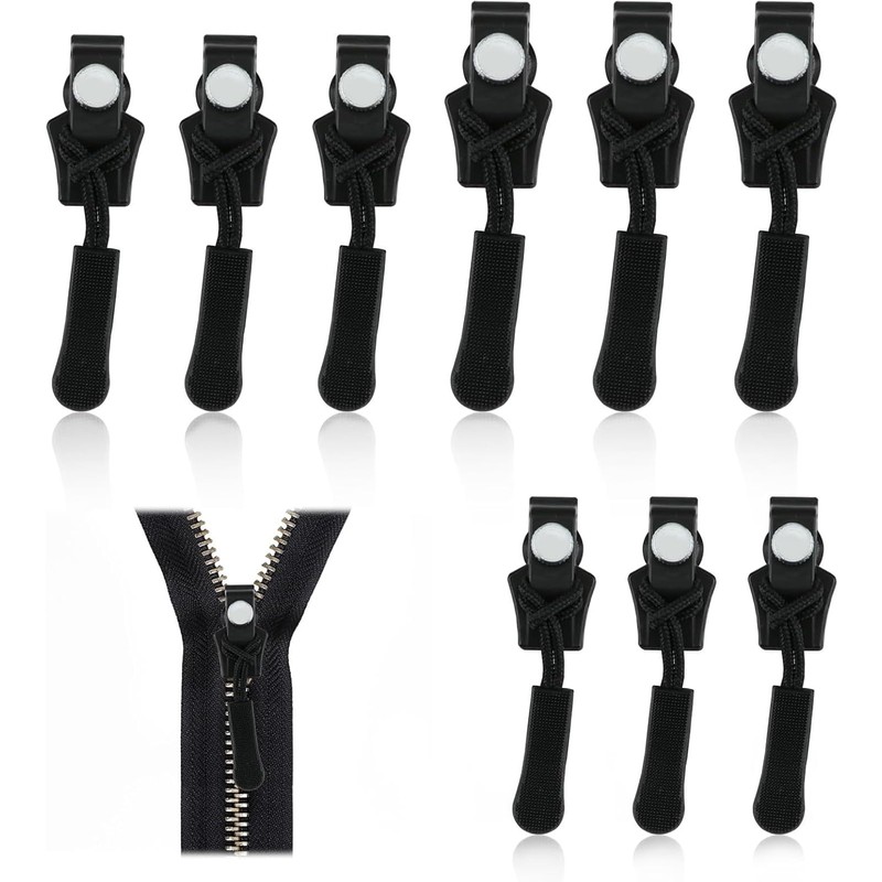 9PCS Zipper Puller Replacement, 3 Sizes Zip Repair Kit, Removable Zipper Puller, Universal Extension & Fixing Replacement Slider for Luggage Backpacks Jackets Jeans No Tools