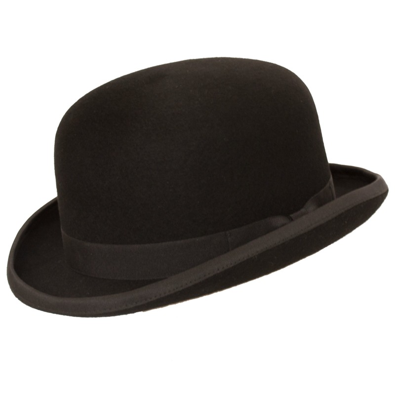 - CLASSIC DERBY/BOWLER SHAPE - This hat features the classic rounded crown and pencil curl brim of a derby hat. It has a narrow grosgrain ribbon to suit contemporary fashions.