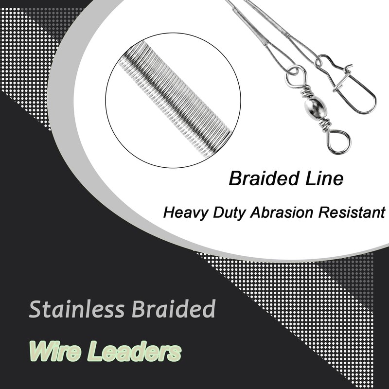 - Excellent Material Wire Leader Lures : The main body of these wire fishing leaders steel are made of high quality stainless steel, anti corrosion, non rusting, durable, impact resistant, prevents the sharp teeth of big fish from biting it off, and can be used for a long time.
