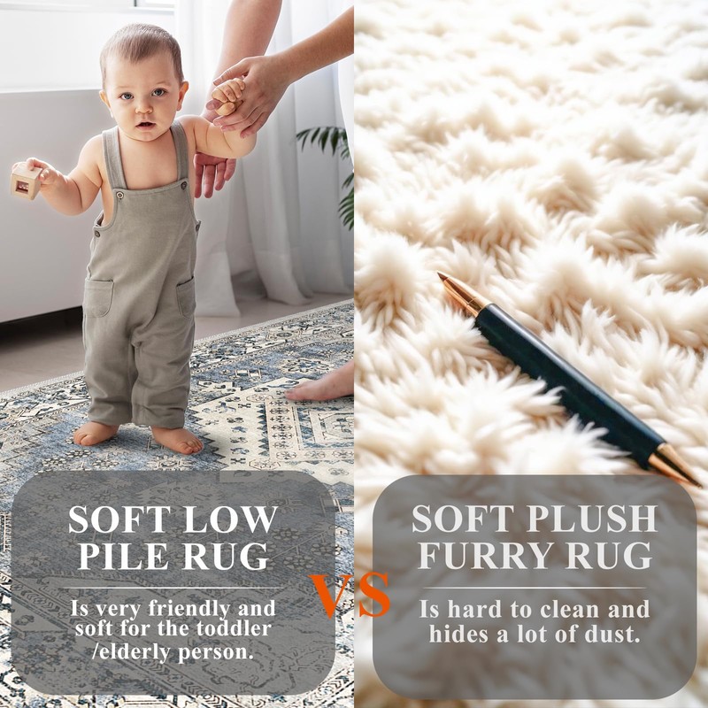 • SOFT LOW-PILE RUG: Our area rug 9x12 are made from a soft polyester surface. Low pile washable area rug is very suitable for the elderly person who prefers to go barefoot and avoid picking up too much dust & stains. These 9x12 area rug are also suitable for pets to avoid chewing the pile.
