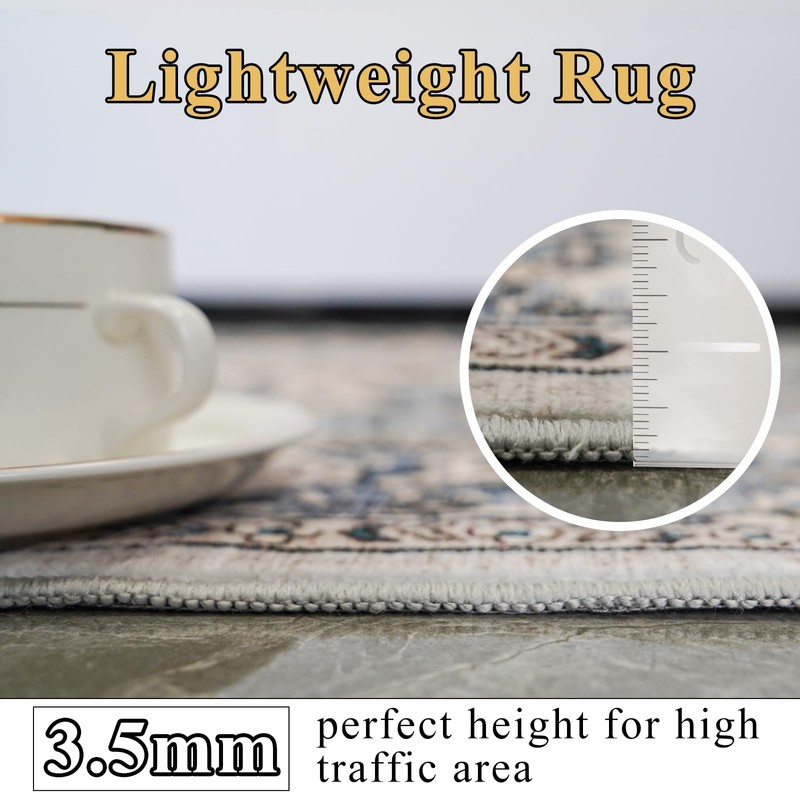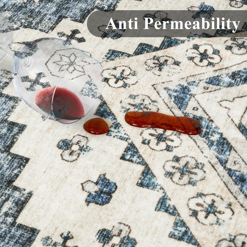EISUROM Washable Distressed Area Rugs for Living Room SOFT LOW-PILE RUG: This vintage rug for bedroom is made from low pile polyester which are very suitable for your pets. TRENDY PATTERN DESIGN: This washable area rug features distressed pattern with faded design making it the perfect addition to any living room. Rugs for living room can fold flat for easy stowing. MACHINE WASHABLE & EASY TO MAINTAIN: This large area rug livingroom is easy to clean. The surface is non-slip and will not soak through if liquid is accidentally spilt. You can just wipe it off with a towel in time. It is machine washable. STAIN & FADE RESISTANT: Non-slip backed helps keep the rug in place. Ultra soft low pile resists fading and is virtually shed.