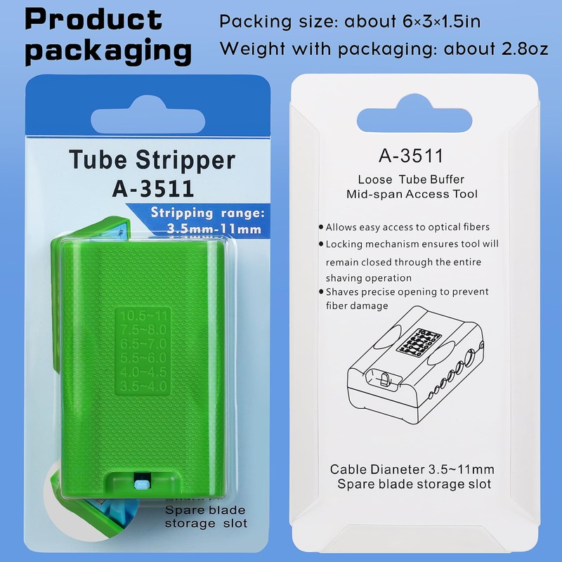 A-3511 Tube Stripper Stripping range 3.5-11mm Replaceable blade Cable Tube Slitter Fiber Optic Mid Span Cable Cutting Tool Jacket Tube Slitter Loose Tube Buffer with 12pcs spare blade