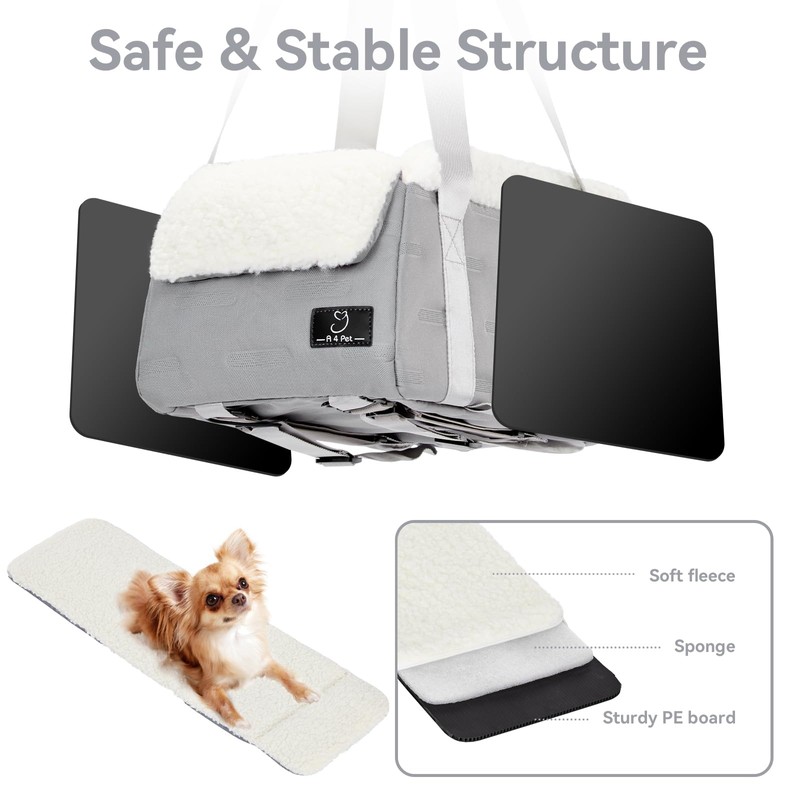 - All-Season Comfort Carrier: Soft plush edges and a reversible cushion (cool/warm sides) make this the most comfortable dog car seat consoles. The PE-board reinforced structure won't collapse, while the adjustable front pillow lets pets lounge comfortably during trips.