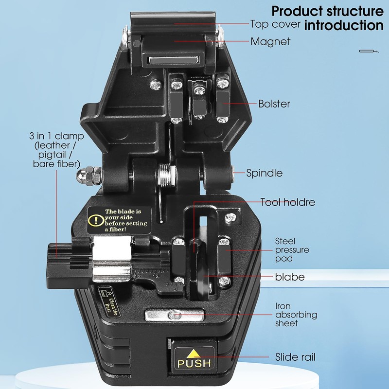- The push rod automatically bounces back after cutting off the fiber optic core, without the need for manual operation