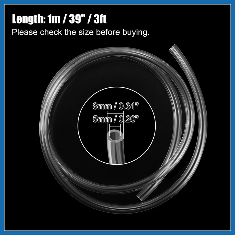 - Precise: Gas Fuel Hose Line Length: 1m / 39'' / 3ft, Outside Dia: 8mm / 0.31'', Inside Dia: 5mm / 0.20''.
