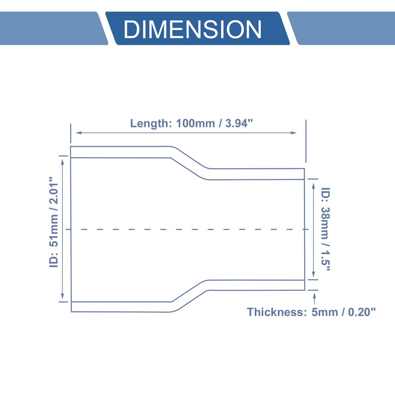 • [Größe] ID: 38mm / 1,5"-51mm / 2,01", Grad: 0°, Länge: 100mm / 3,94", Stärke: 5mm / 0,20".