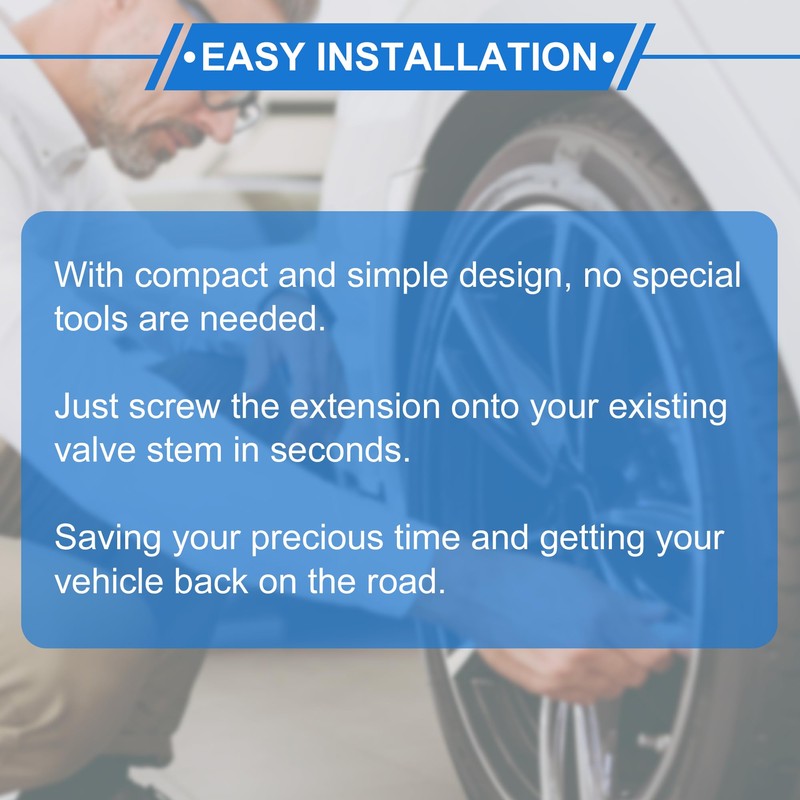 - Einfache Installation: Mit kompaktem und einfachem Design sind keine speziellen Werkzeuge erforderlich. Schrauben Sie es einfach in Sekunden auf Ihr vorhandenes Ventil. Sparen Sie Ihre kostbare Zeit und bringen Sie Ihr Fahrzeug schnell wieder auf die Straße.