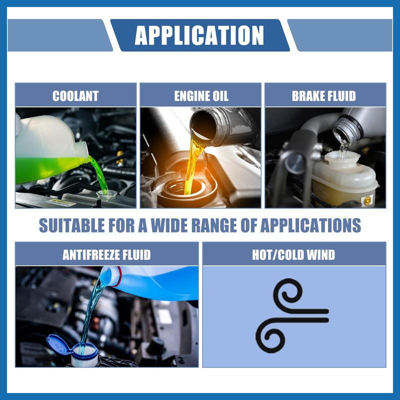 - Stabil: [Anwendung] Gilt für Kühlmittel, Motoröl, Bremsflüssigkeit, Frostschutzflüssigkeit, heißer/kalter Wind usw.