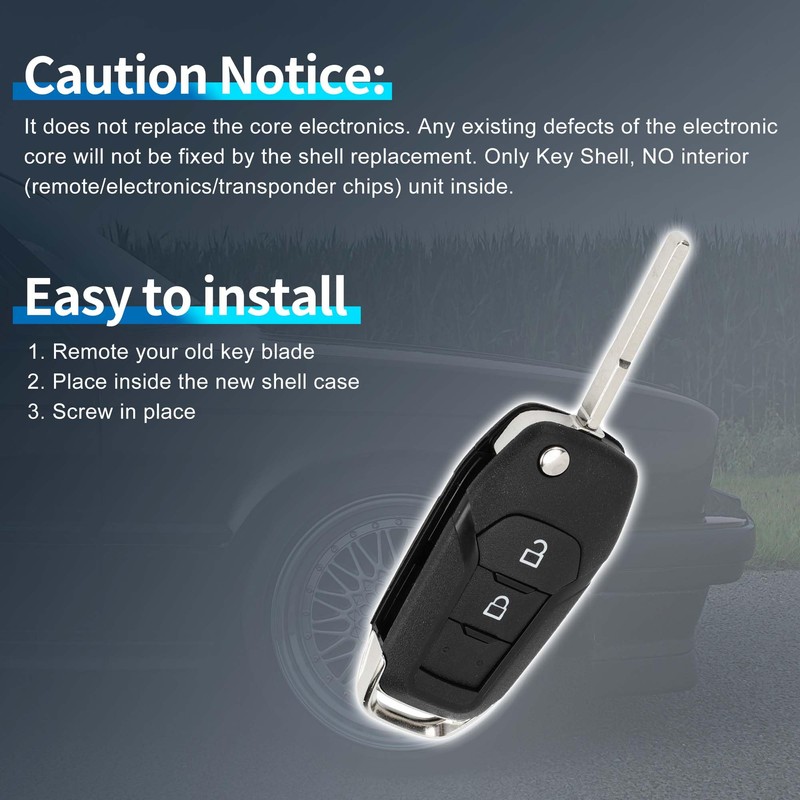 Caution Notice: It does not replace the core electronics. Any existing defects of the electronic core will not be fixed by the shell replacement. Only Key Shell, NO interior (remote/electronics/transponder chips) unit inside.