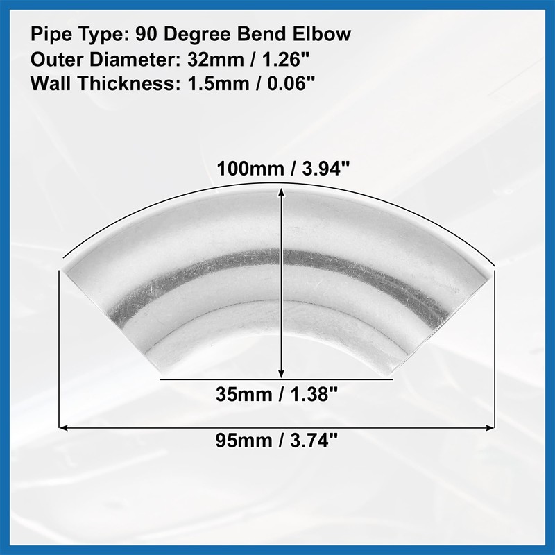 - Preciso: Especificaciones de tubería: Tipo de tubería: Codo de curva de 90 grados. Tamaño: 95 x 35 mm (largo x ancho). Diámetro exterior: 32 mm. Longitud del arco trasero: 100 mm. Grosor de la pared: 1,5 mm.