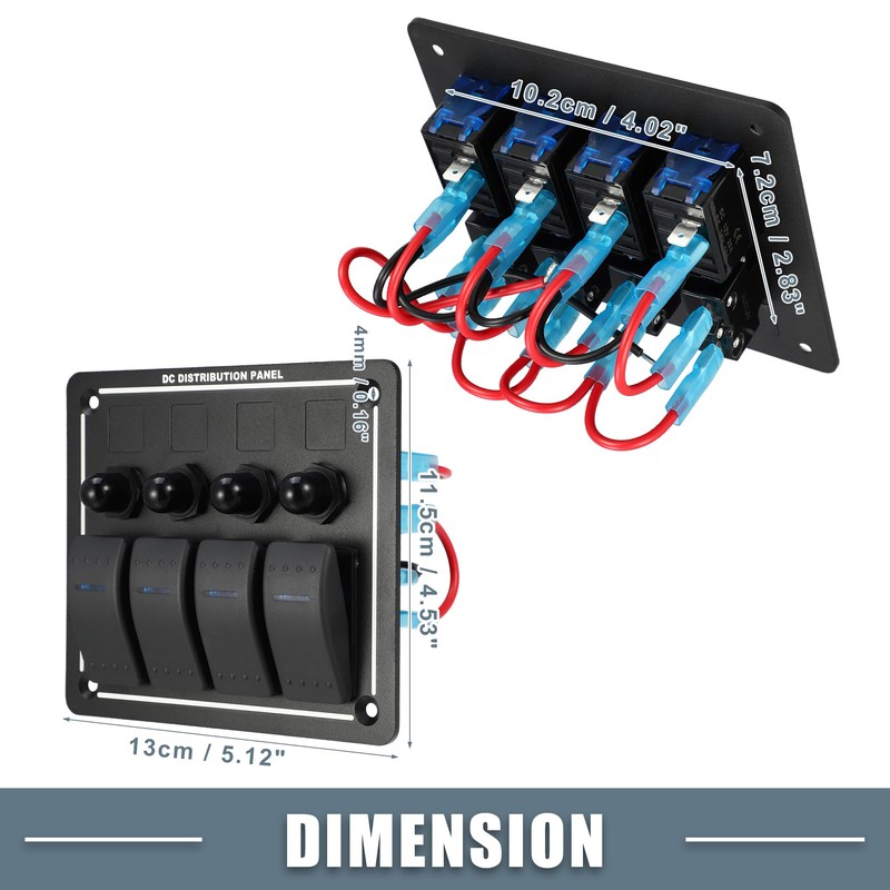 The 3-pin pass-through rocker switch design is easy to install, and the 4 sets of switches can be applied to DC12V or DC24V operating voltage.